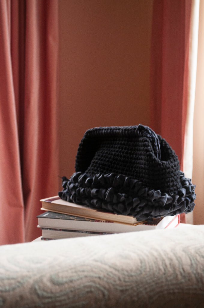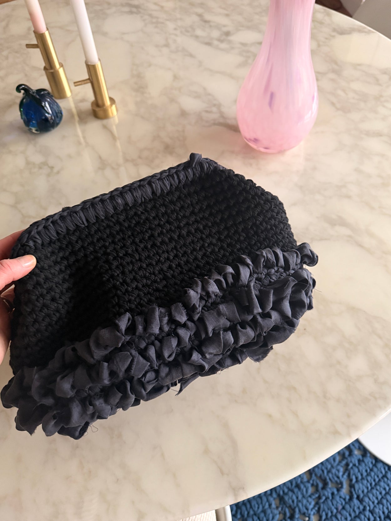 Unser Special zur Black Week. Eine streng limitierte traumhafte Clutch. Perfekt für den Abend oder ein Konzert. So luxoriös gehäkelt aus alter Seide und Bio-Baumwolle.
