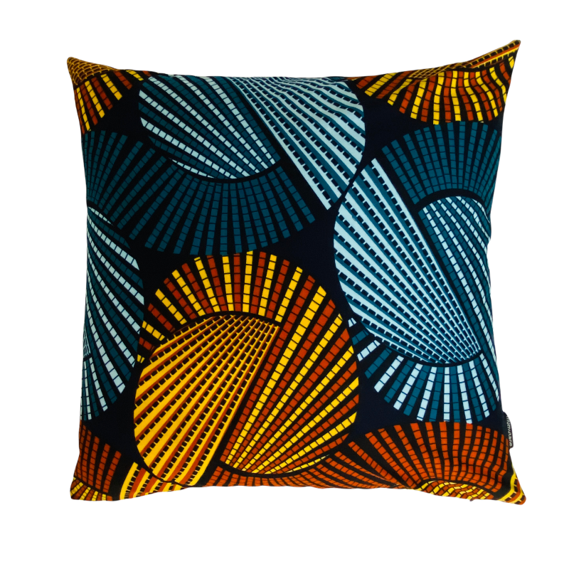Auf der Vorderseite findest Du einen gemusterten Wachsdruckstoff.Sie sind bekannt für ihre vielen verschiedenen grafischen Ausdrücke, Farben, Symbole und Geschichten.