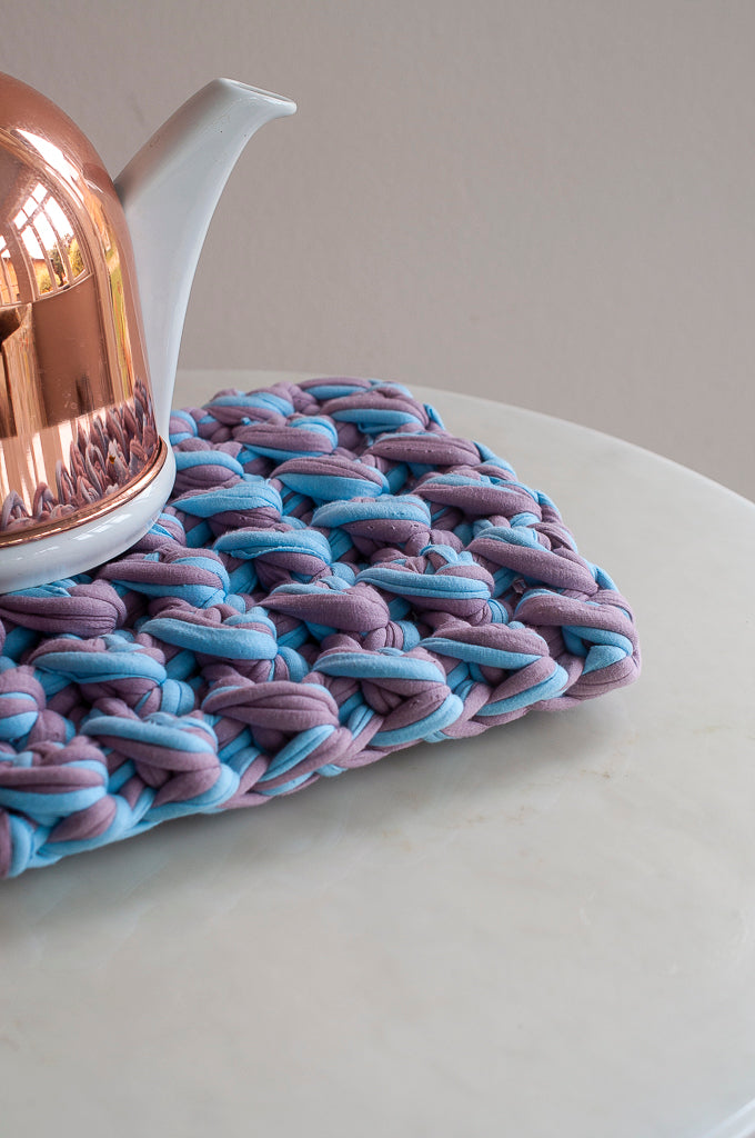 (Topf-) Untersetzer, Textilobjekt Hellblau - Lila