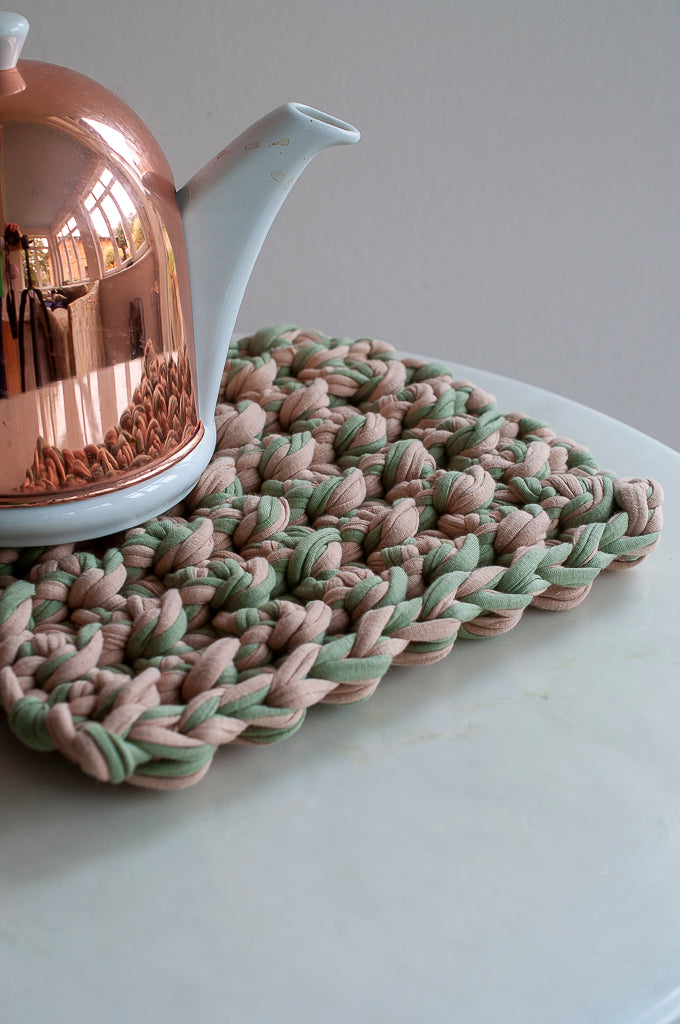 (Topf-) Untersetzer, Textilobjekt, Grün - Beige