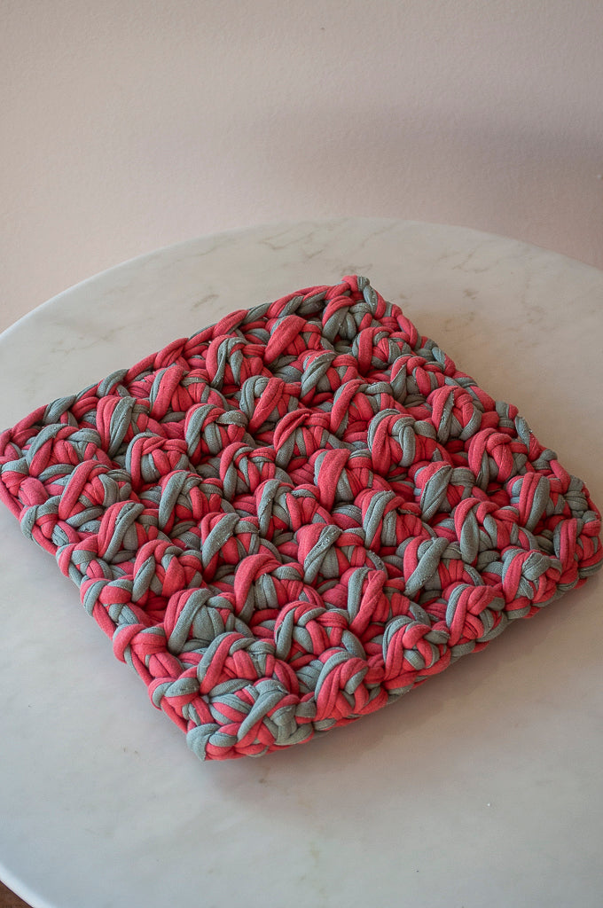 Wirklich einzigartig: aus Reststoffen aus der Textilindustrie häkeln wir diese farbenfrohen, dekorativen und sehr praktischen Untersetzer.