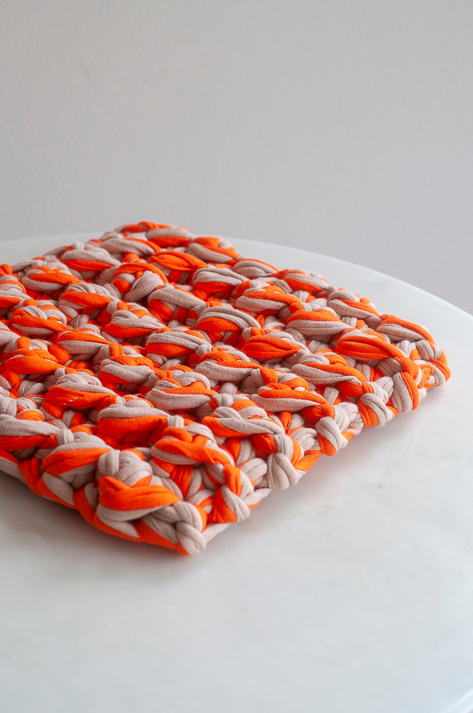 (Topf-) Untersetzer, Textilobjekt, Orange -Beige