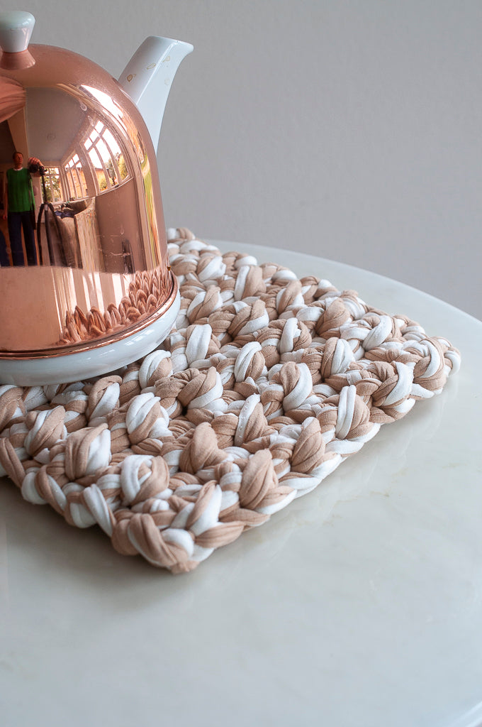 (Topf-) Untersetzer, Textilobjekt, Beige - Ecru