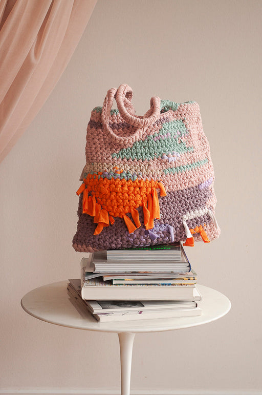 Verliebe dich in Deine Re-Bag. Jede ist ein Unikat. Jede mit viel Gefühl für Farbe und Materialien entworfen und von Hand gehäkelt. Wir verwenden Recyclinggarne, alte T-Shirts und neuerdings auch Reste der Produktion von Mumutane-Kissen - also super hochwertige wunderschöne Stoffetzen aus afrikanischen Wachsprints. Sie sind immer nur limitiert erhältlich.