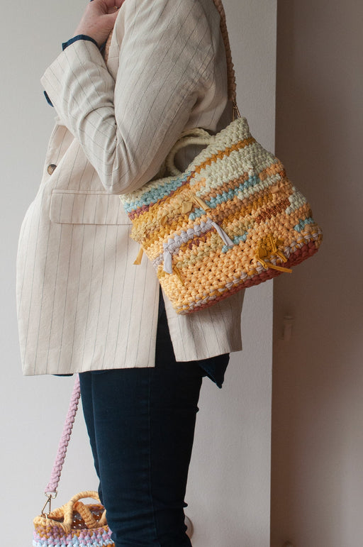 Wir lieben Taschen! Daher gibts bei uns zwei verschiedene Arten: einmal unsere Re-Bags aus Reststoffen und dann die tollen Clutches, die aus alten Stickgarnen und Wollresten gehäkelt werden.