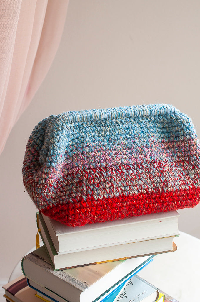 It is worn under the arm without a handle and is therefore a fashionable companion for many outfits. But we can also imagine it as a particularly beautiful bag for cosmetic items, smaller handicraft projects or as a diaper bag. Because the colors are simply to fall in love with.