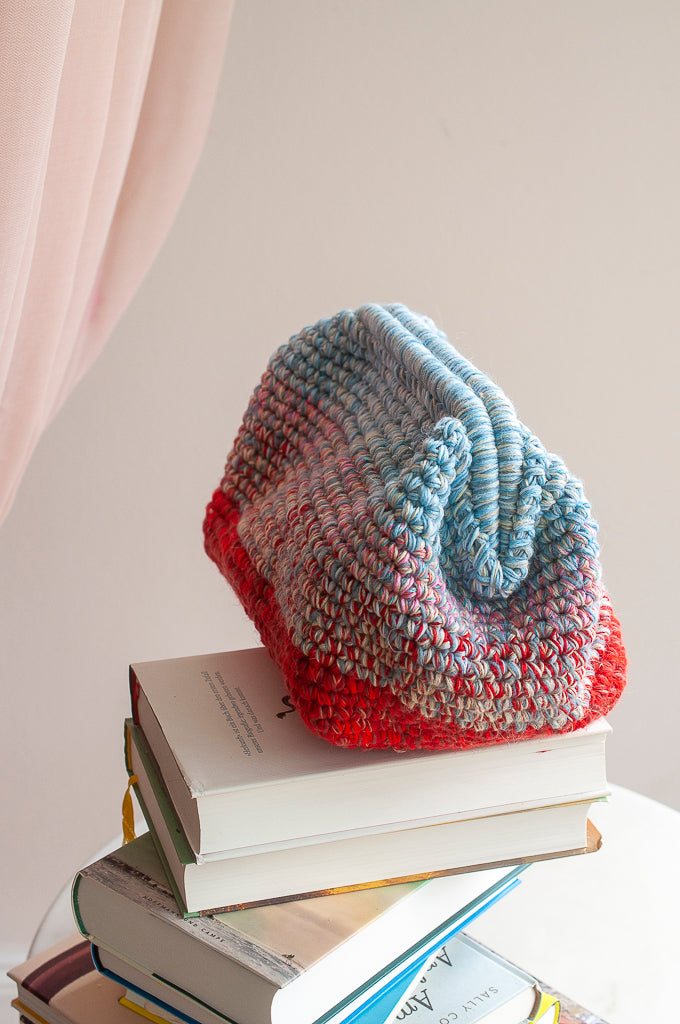 Each one is different. Each beautiful in its own way. They are crocheted from leftover wool, leftover embroidery thread and everything that no one needs anymore. These yarns are spun together and then crocheted. This creates beautiful color combinations that are simply fun.