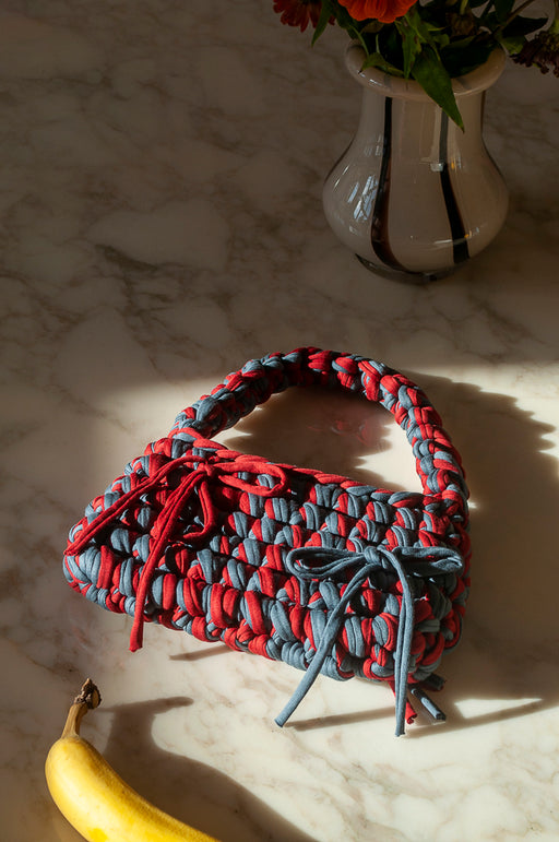 “Click Clack” clutch bag made from leftover yarn
