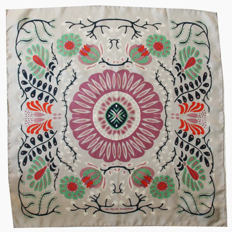 Sie haben eine außergewöhnliche Verarbeitung mit einem handgerollten Saum. Sie werden in einer Schachtel verkauft, die von alten Streichholzschachteln inspiriert ist. 100% Seide