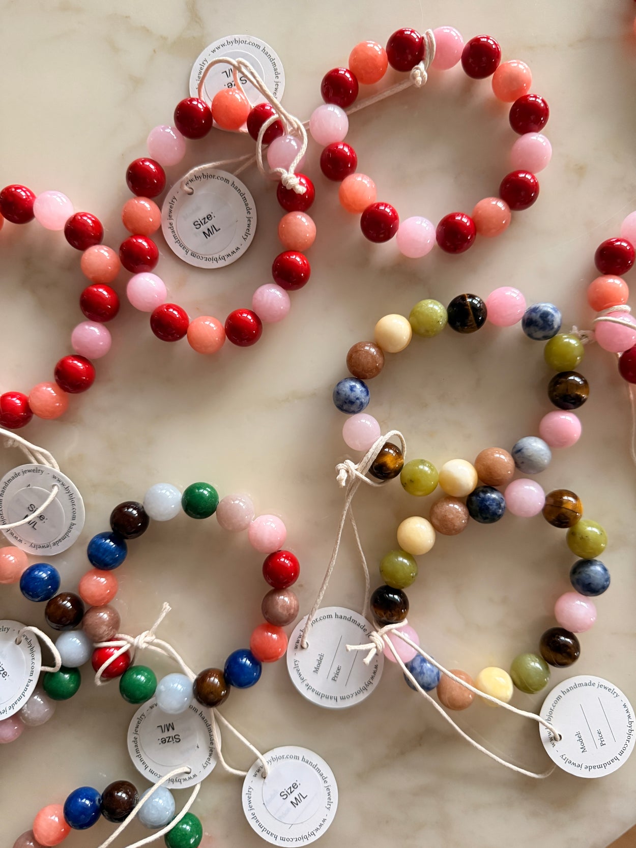 Armband mit kleineren Kugeln und echten Steinen