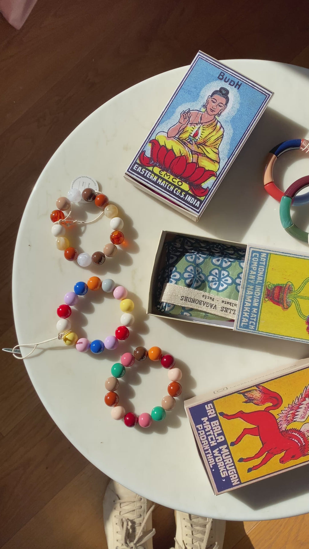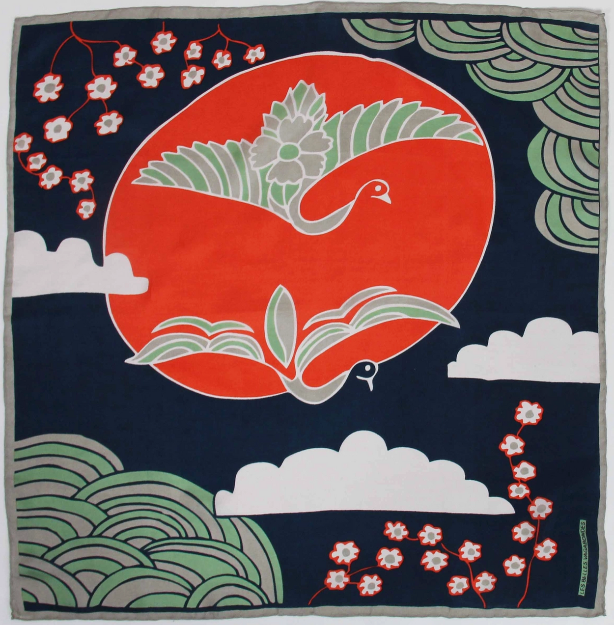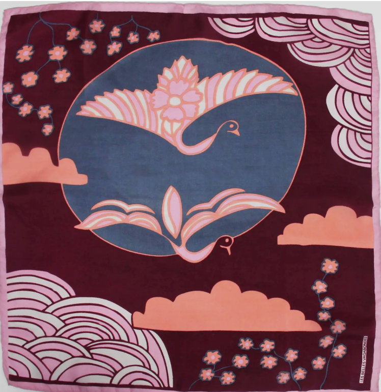 Sie haben eine außergewöhnliche Verarbeitung mit einem handgerollten Saum. Sie werden in einer Schachtel verkauft, die von alten Streichholzschachteln inspiriert ist. 100% Seide