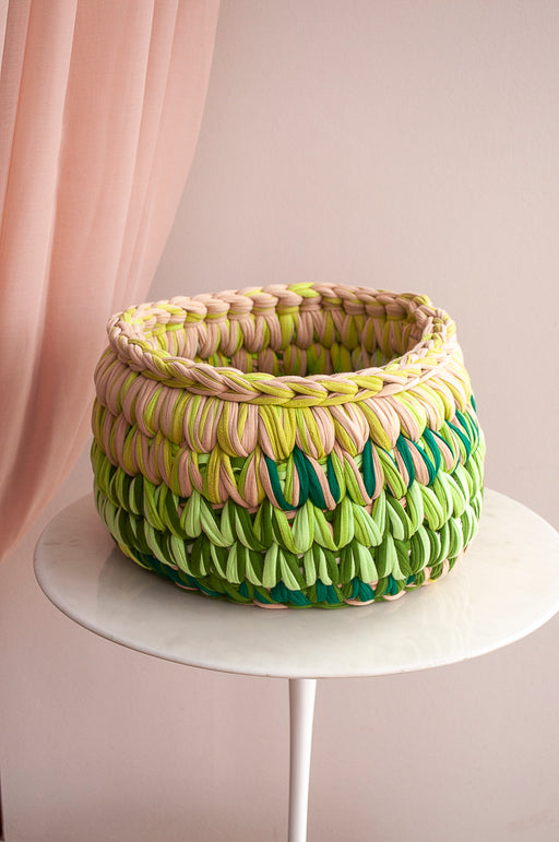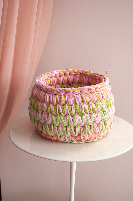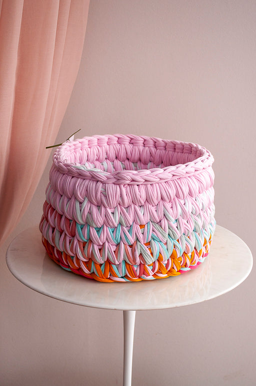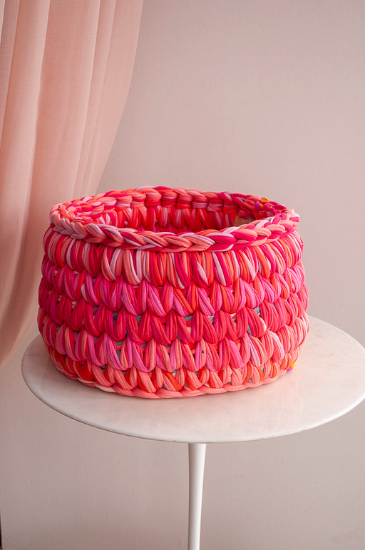 Our baskets are not just practical storage options. They are small works of art that are of unparalleled quality and beautiful. They are a highlight in every room and in their larger version they are almost a small piece of furniture. All baskets are made from recycled yarns.
