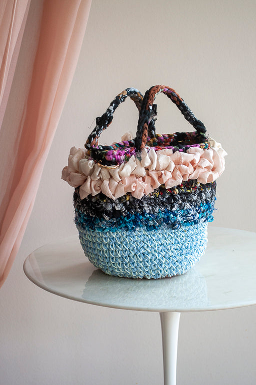 Toll zum Abendkleid oder ganz casual. Unsere Magnolias bereiten einfach Freude. Sie sind gehäkelt aus Resten alter Seide, Kopftüchern und Papiergarn. Federleicht und besonders elegant. Wie alle Lumikellos sind sie limitiert und unikat.