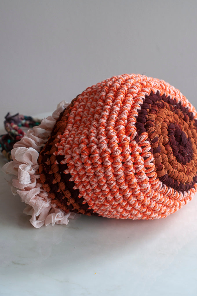 Material: Reste von Seide, Papiergarn und Second-Hand Kopftüchern aus Materialmix