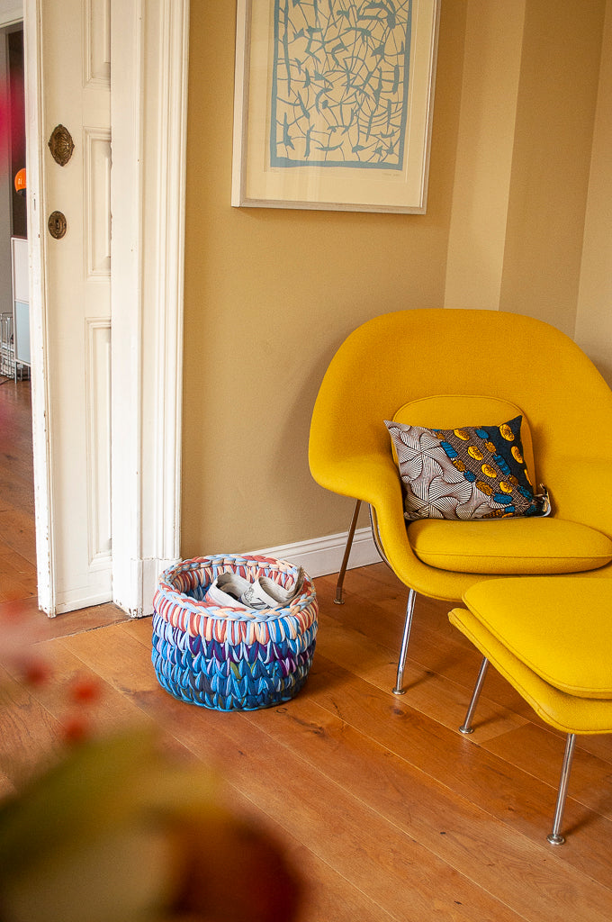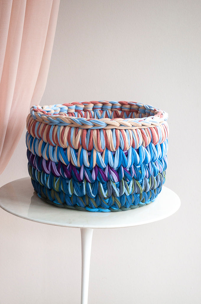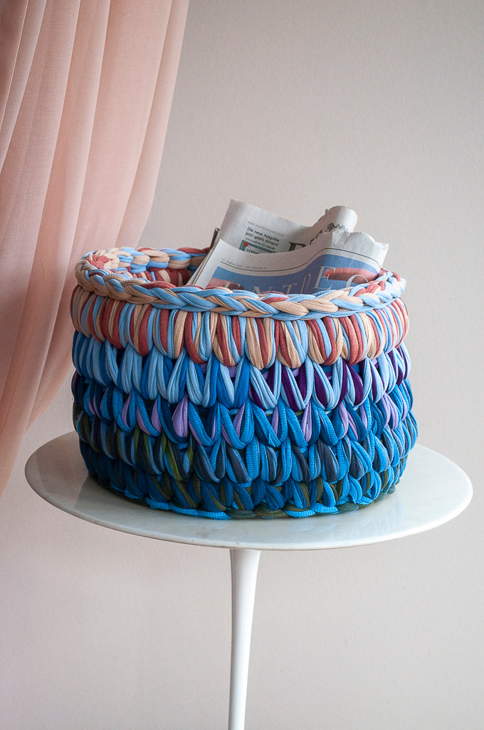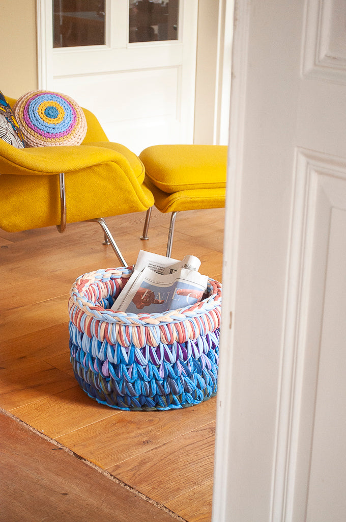 Sie werden in unglaublicher Handarbeit in unserem Partnerprojekt in Griechenland aus textilen Reststoffen angefertigt, die direkt dort vor Ort in einer T-Shirt Färberei entstehen. Wir kombinieren immer wieder neu: Farben, Texturen und so entstehen wunderschöne Einzelstücke.