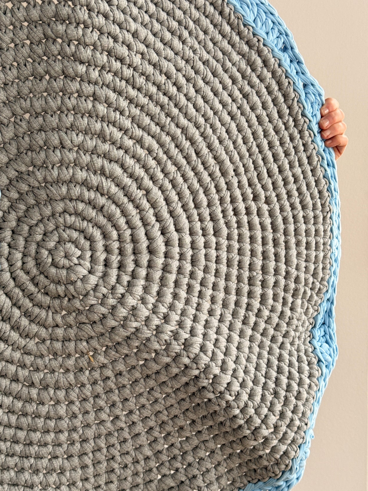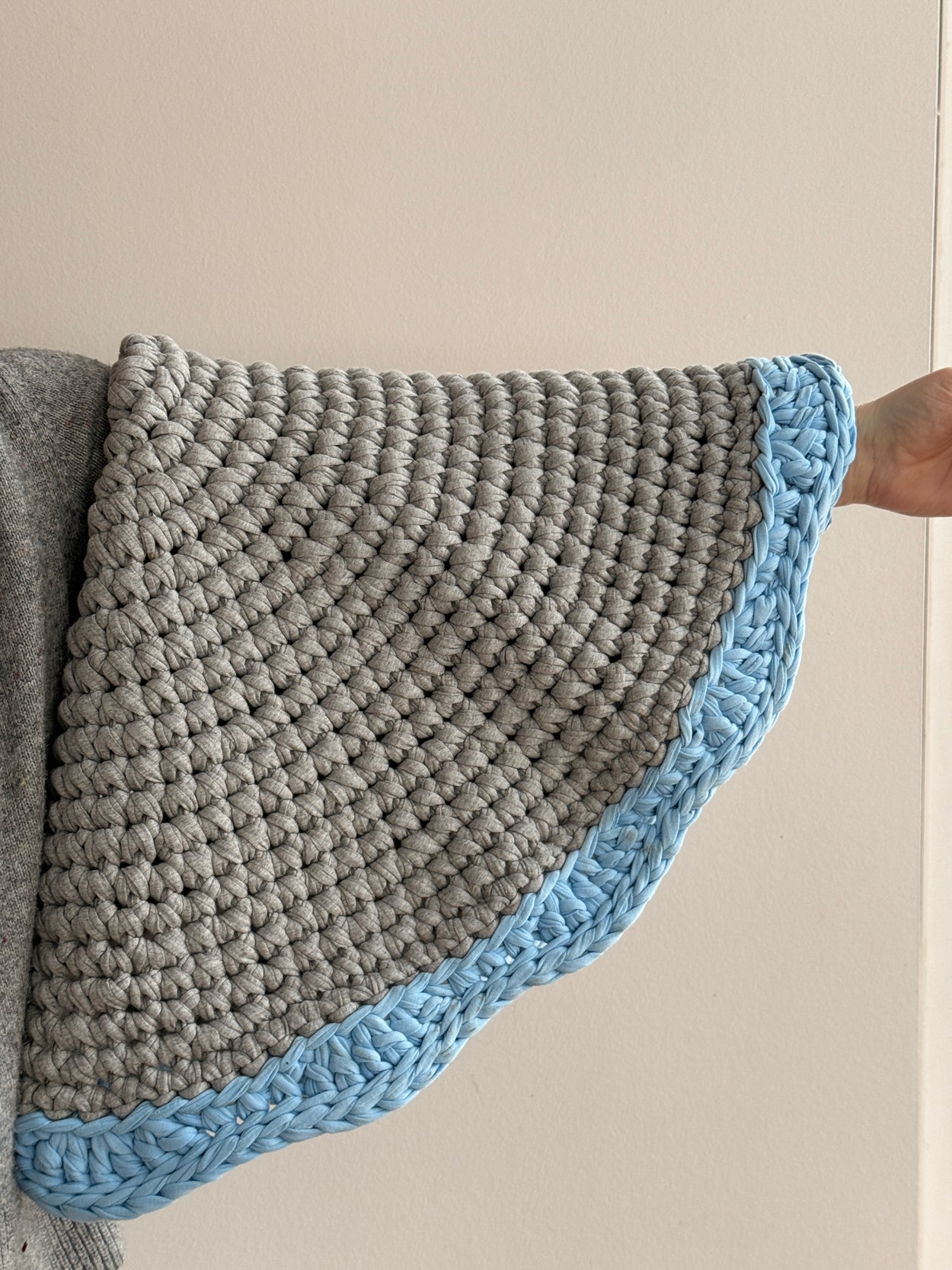 Gehäkelt werden sie von unseren Partnern in Griechenland aus Resten aus der Textilindustrie und können bequem bei 30 Grad in der Waschmaschine gewaschen werden. So praktisch.