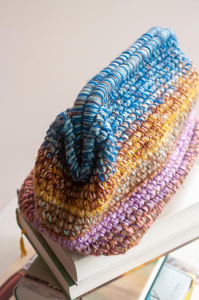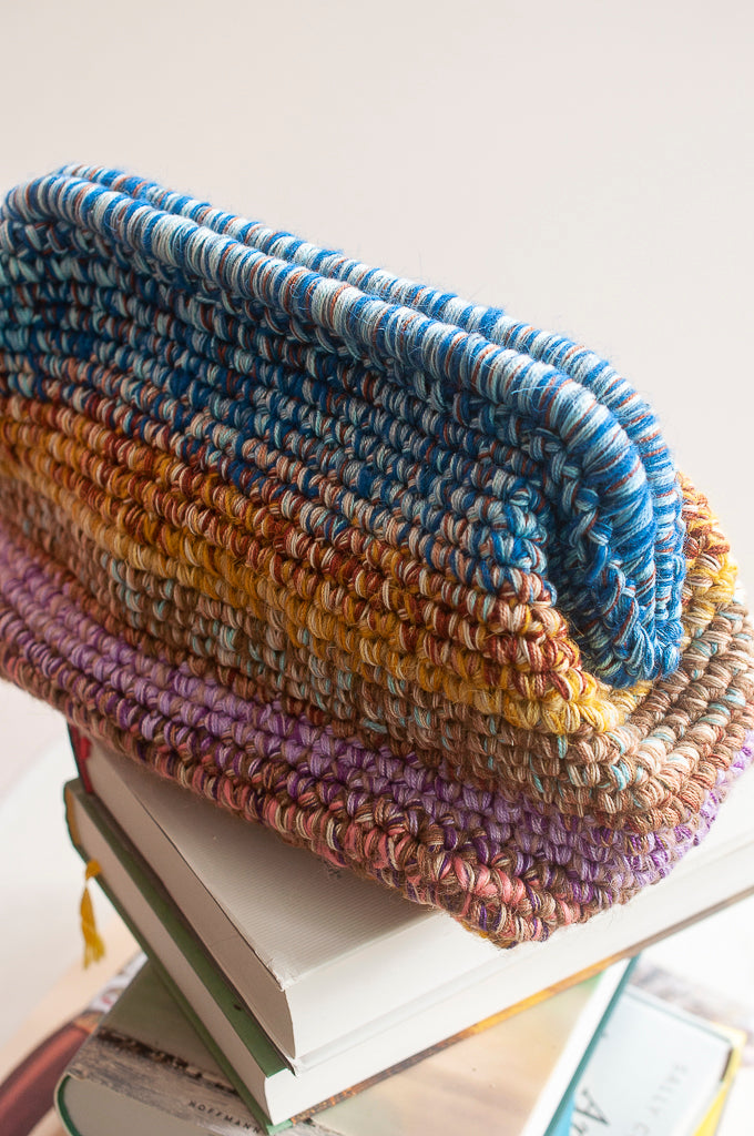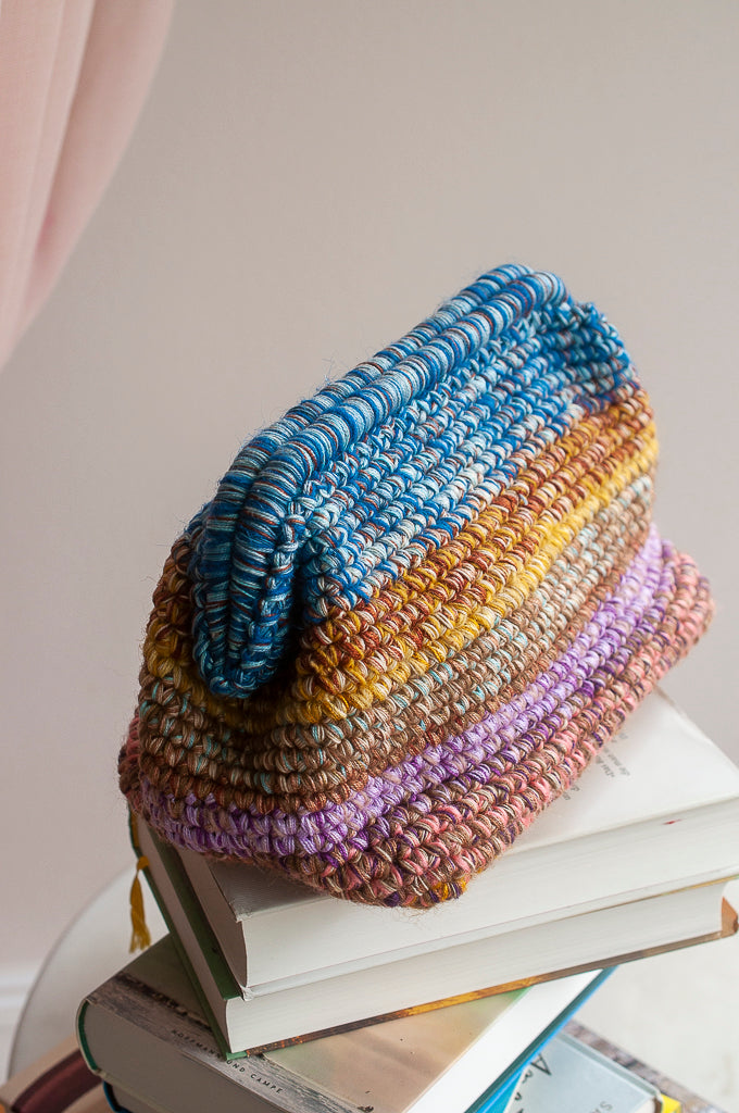 It is worn under the arm without a handle and is therefore a fashionable companion for many outfits. But we can also imagine it as a particularly beautiful bag for cosmetic items, smaller handicraft projects or as a diaper bag. Because the colors are simply to fall in love with.